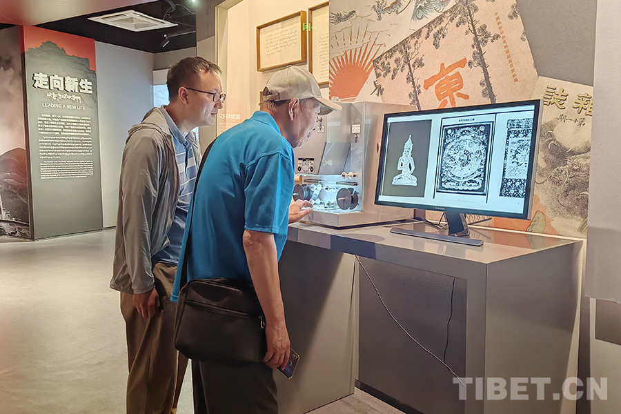 圖為紀(jì)念西藏江孜抗英保衛(wèi)戰(zhàn)120周年主題展現(xiàn)場,觀眾通過膠片機(jī)了解被英國劫掠的西藏文物 攝影:楊月云