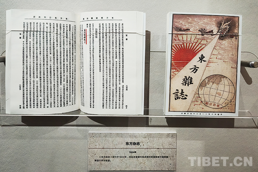 圖為創(chuàng)刊于1904年的《東方雜志》,雜志首卷對英國侵略西藏一事進(jìn)行了詳盡報(bào)道。拍攝于紀(jì)念西藏江孜抗英保衛(wèi)戰(zhàn)120周年主題展 攝影:楊月云