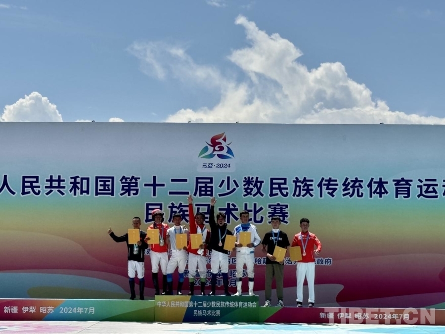 開幕式后,首個馬上項目——民族賽馬2000米比賽鳴槍起跑。經(jīng)過激烈角逐,西藏代表團選手扎西平措獲一等獎、陸江峰獲二等獎、仁青倫珠獲三等獎。