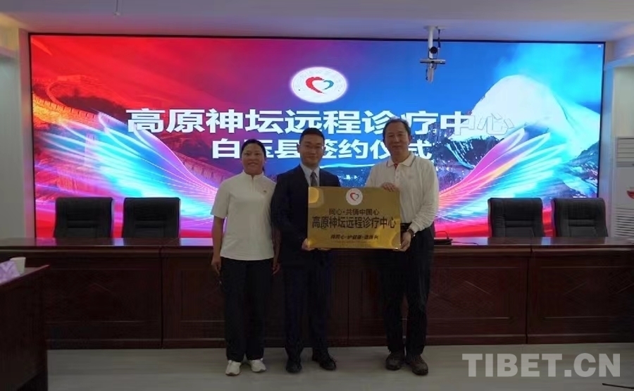 中國西藏網(wǎng)訊 7月8日下午,“同心·共鑄中國心”高原神壇遠(yuǎn)程診療中心白玉縣座談會(huì)在甘孜州白玉縣人民醫(yī)院舉行。白玉縣委常委、統(tǒng)戰(zhàn)部長(zhǎng)約來,縣衛(wèi)生健康局、縣人民醫(yī)院相關(guān)負(fù)責(zé)人,“高原神壇專項(xiàng)基金”專家組成員清華長(zhǎng)庚醫(yī)院神經(jīng)中心主任王貴懷、北京天壇醫(yī)院神經(jīng)外科原主任魏希發(fā)、北京豐臺(tái)醫(yī)院副院長(zhǎng)神經(jīng)外科主任馬延山、國家電網(wǎng)北京電力醫(yī)院神經(jīng)外科主任宗淼、首都醫(yī)科大學(xué)北京首鋼醫(yī)院神經(jīng)外科主任高峰等出席會(huì)議。座談會(huì)期間,與會(huì)人員就“高原神壇遠(yuǎn)程診療中心”項(xiàng)目進(jìn)行了深入討論,簽訂了高原神壇遠(yuǎn)程診療中心幫扶協(xié)議,并為“同心·共鑄中國心”高原神壇遠(yuǎn)程診療中心授牌。