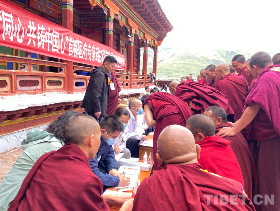 中國(guó)西藏網(wǎng)訊 7月9日上午,“同心·共鑄中國(guó)心”甘孜縣分隊(duì)部分專家列入紅一連和紅三連(小分隊(duì)),驅(qū)車前往甘孜縣白利寺,為白利寺僧眾義診?,F(xiàn)場(chǎng)設(shè)有骨關(guān)節(jié)科、中醫(yī)科、耳鼻喉科、內(nèi)科等多個(gè)窗口,開展點(diǎn)對(duì)點(diǎn)、科對(duì)科的細(xì)致咨詢與診療。
