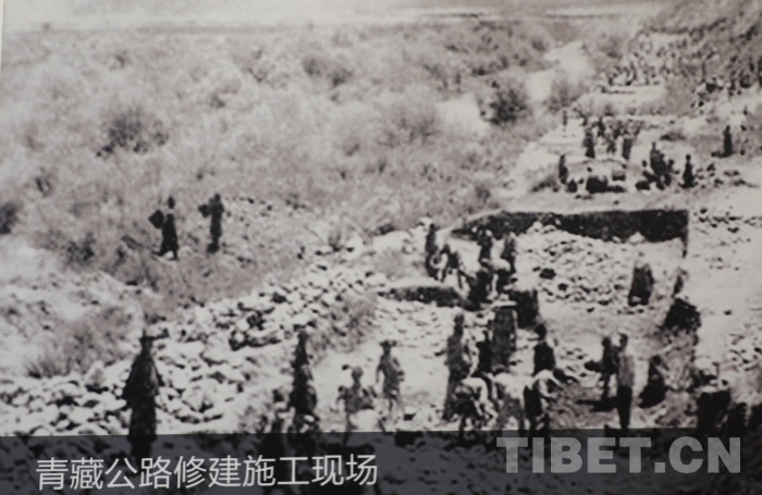 圖為青藏公路修建施工現(xiàn)場 翻拍自青海省博物館 翻拍:王茜