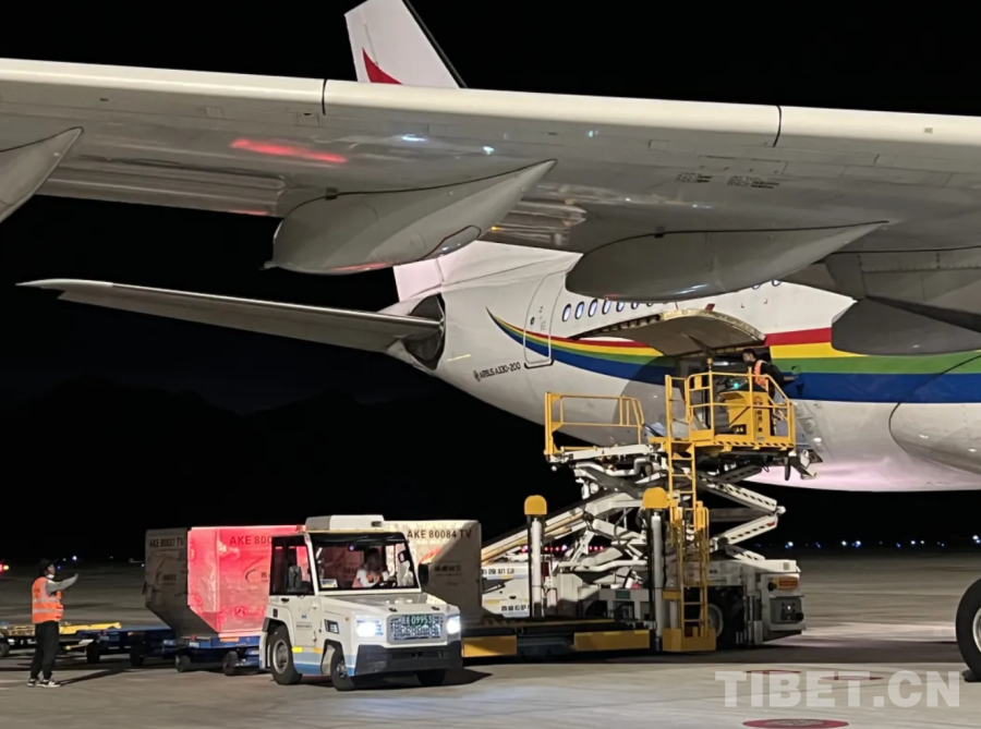 圖為拉薩貢嘎國際機場夜間保障現(xiàn)場