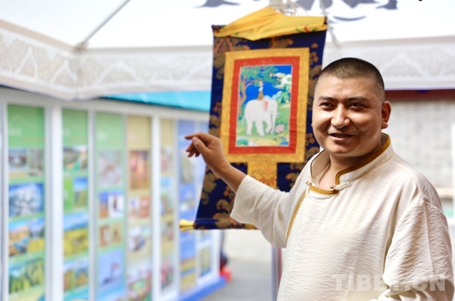 活動結束后,扎西尖措接受了記者的采訪。他說:“唐卡作為一種獨具青藏高原特色的繪畫藝術,在千百年的繼承和發(fā)展中,不斷借鑒和吸收周邊各民族的文化藝術精華,經過漫長的發(fā)展過程,逐漸形成了眾多異彩紛呈的風格流派,呈現出多姿多彩的風貌特征,并以其龐大的內容體系,獨特的藝術表現形式,非凡的工藝水平在我國乃至世界藝術之林中熠熠生輝。如今隨著時代的進步,唐卡不僅僅限于宗教文化,更是民間的文化藝術。唐卡繪畫主題既有守正也有創(chuàng)新,有謳歌新時代的題材、也有禮贊廣大人民群眾的圖景。不拘泥于宗教為主的傳統(tǒng)題材。
