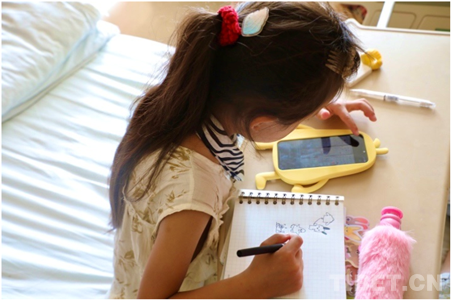 記者了解到,澤多家里共有4個孩子,小澤丹在四個兄弟姐妹中排行老三,也是家中最好學(xué)的孩子。在醫(yī)院病房里,小澤丹拿著一本自己專屬的筆記本,反復(fù)在上面寫著自己的漢文和藏文名“澤丹(????????)”。有時她也會照著手機(jī)里的圖片,一筆一劃有模有樣地勾勒出各種圖案。