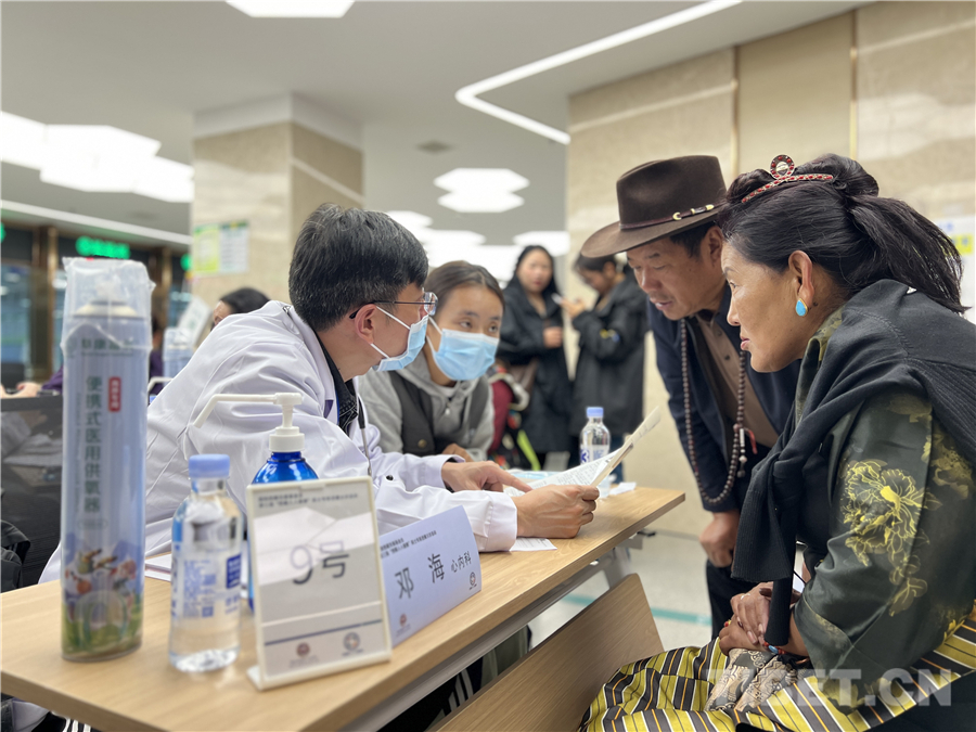 15日上午,在西藏阜康醫(yī)院早已布置好的義診點,來自全國各地的院士專家對號入座,每個人旁邊還安排了一位翻譯,一切準備就緒。前來咨詢、問診的患者根據(jù)自身需求排隊等待咨詢、檢查?,F(xiàn)場醫(yī)護人員耐心傾聽市民群眾講述自己的病癥,為他們測量血壓、把脈,叮囑他們做好疾病調(diào)治、身體保健和疾病預(yù)防等事宜。同時,為就診者仔細檢查,為有需要的就診者提供病情診斷、用藥指導。