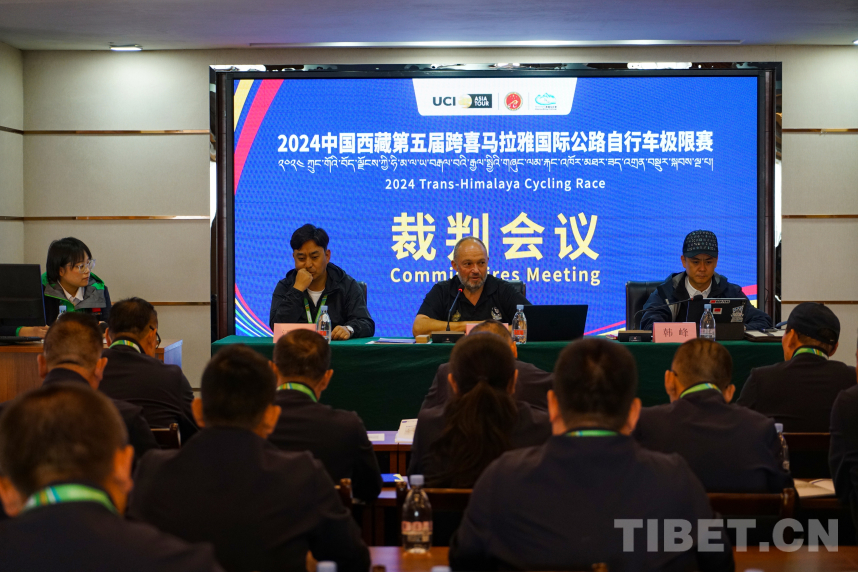 圖為托尼·安東尼在2024中國(guó)西藏第五屆跨喜馬拉雅國(guó)際公路自行車極限賽裁判會(huì)議上與裁判團(tuán)隊(duì)進(jìn)行溝通 攝影:馮重霖