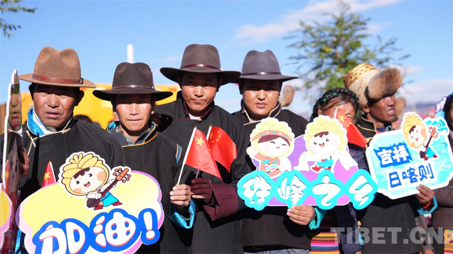 圖為在日喀則賽段起點(diǎn)為運(yùn)動(dòng)員加油的觀眾 攝影:德吉卓瑪