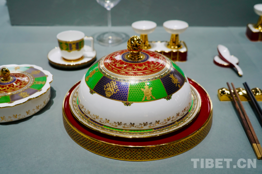 圖為繪有吉祥八寶的牦牛骨瓷餐具 攝影:隋藝斐