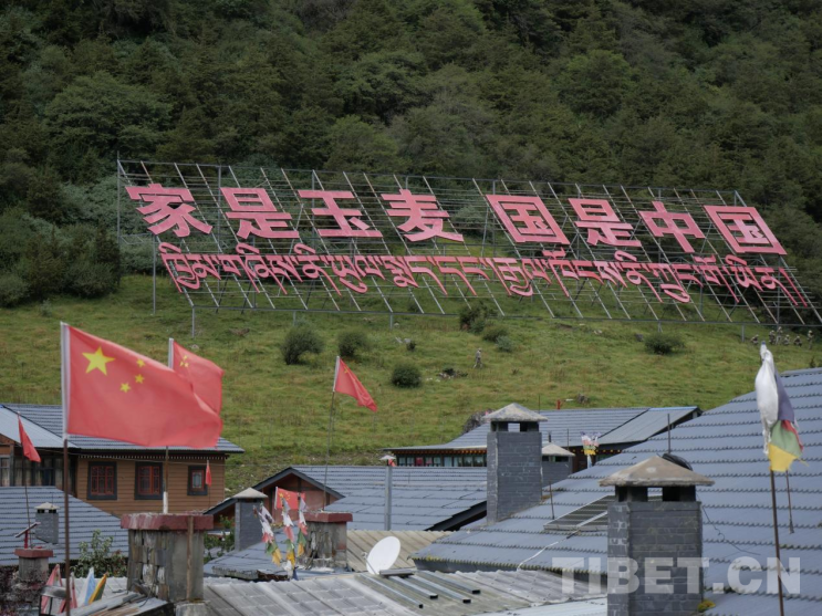 圖為玉麥鄉(xiāng)“家是玉麥,國(guó)是中國(guó)”標(biāo)語(yǔ) 攝影:文翔宇