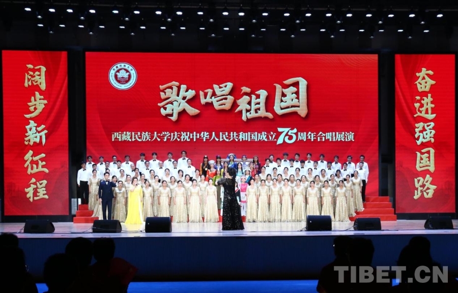 中國西藏網(wǎng)訊 紅旗獵獵,歌聲嘹亮。在喜迎中華人民共和國成立75周年之際,9月28日,一場以“歌唱祖國”為主題的合唱展演在西藏民族大學(xué)文體館舉行。