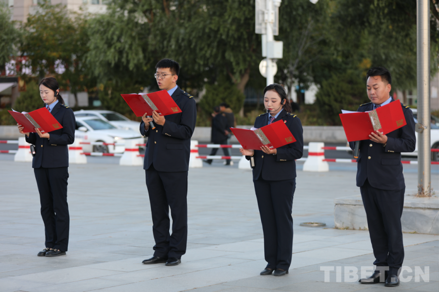 中國西藏網(wǎng)訊 在新中國成立75周年這一榮耀時(shí)刻,拉薩火車站舉行了一場莊嚴(yán)而隆重的升國旗儀式。10月1日上午8時(shí)整,雄渾的國歌聲奏響,駐站武警儀仗隊(duì)邁著整齊劃一的步伐,護(hù)衛(wèi)著五星紅旗走向國旗基座。在火車站干部職工的凝視下,五星紅旗冉冉升起,那是祖國繁榮昌盛的象征。