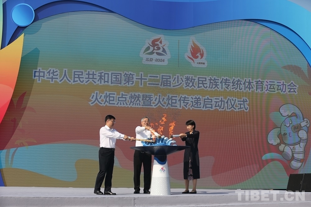 中國西藏網(wǎng)訊 10月9日,中華人民共和國第十二屆少數(shù)民族傳統(tǒng)體育運(yùn)動(dòng)會(huì)(以下簡稱運(yùn)動(dòng)會(huì))火炬點(diǎn)燃暨火炬?zhèn)鬟f啟動(dòng)儀式在海南省三亞市天涯海角舉行。采集自海南熱帶雨林國家公園的“生態(tài)之火”、航行海洋之中“探索二號(hào)”科考船的“科技之火”、崖州灣國家南繁科研育種基地的“希望之火”同頻共燃,匯聚成象征中華民族一家親、同心共圓中國夢的“同心之火”,表達(dá)著全國各族人民攜手并肩、共同邁向美好未來的堅(jiān)定決心。