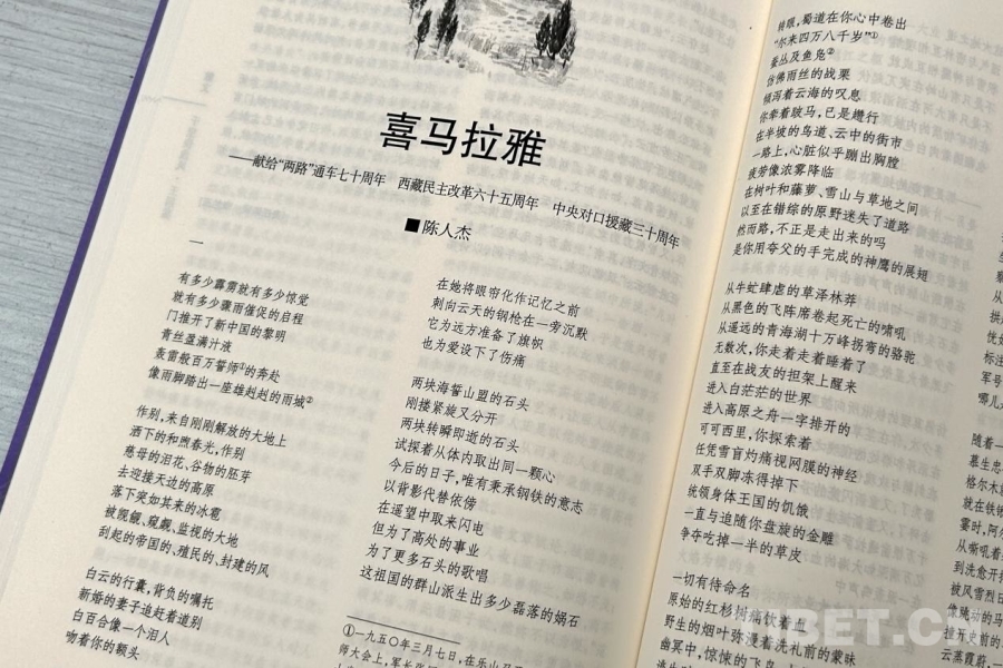從地理喜馬拉雅到“千行詩”《喜馬拉雅》,第八屆魯迅文學(xué)獎(jiǎng)獲得者、西藏自治區(qū)文聯(lián)副主席,同時(shí)也是本詩創(chuàng)作者陳人杰感慨萬千。創(chuàng)作這首凝練了“兩路”通車70周年、西藏民主改革65周年、中央對(duì)口援藏30周年歷史性事件,涵蓋了西藏前世今生到新時(shí)代西藏變化的長(zhǎng)詩,并非易事。歷經(jīng)文思淤堵、無從下筆,到靈光乍現(xiàn)、一氣呵成,陳人杰表示:“《喜馬拉雅》的出爐,是天時(shí)地利人和,是新時(shí)代新征程的使然,是西藏的饋贈(zèng),是眾水般心靈澄澈的力量匯聚起的浩蕩的贊歌?!?/p>
