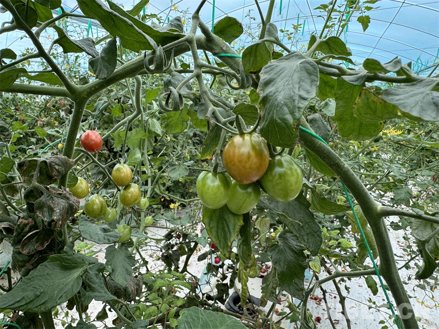 圖為大棚內(nèi)無土栽培即將成熟的圣女果 攝影:王妍丹