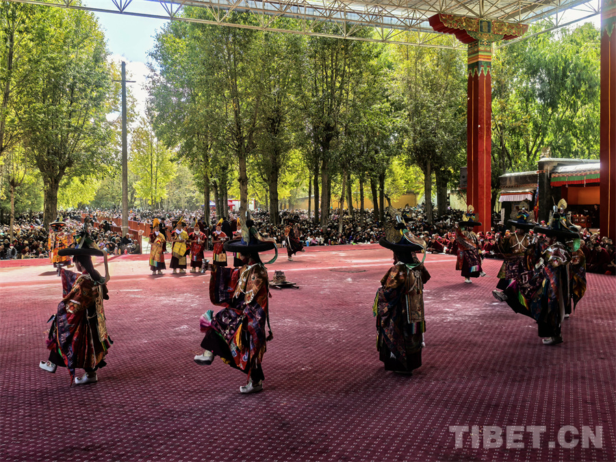 中國西藏網(wǎng)訊 在今年國慶假期里,位于尼色日山腳下的西藏日喀則市扎什倫布寺上演了3天精彩紛呈的“色莫欽姆羌姆”,吸引了眾多當?shù)厝罕姾陀慰颓皝碛^賞。