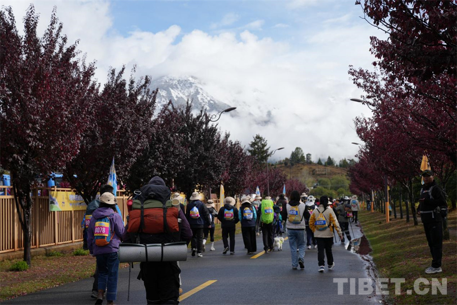 圖為來自五湖四海的徒步者正興致昂揚(yáng)地在巴松措景區(qū)徒步 攝影:邊子捷