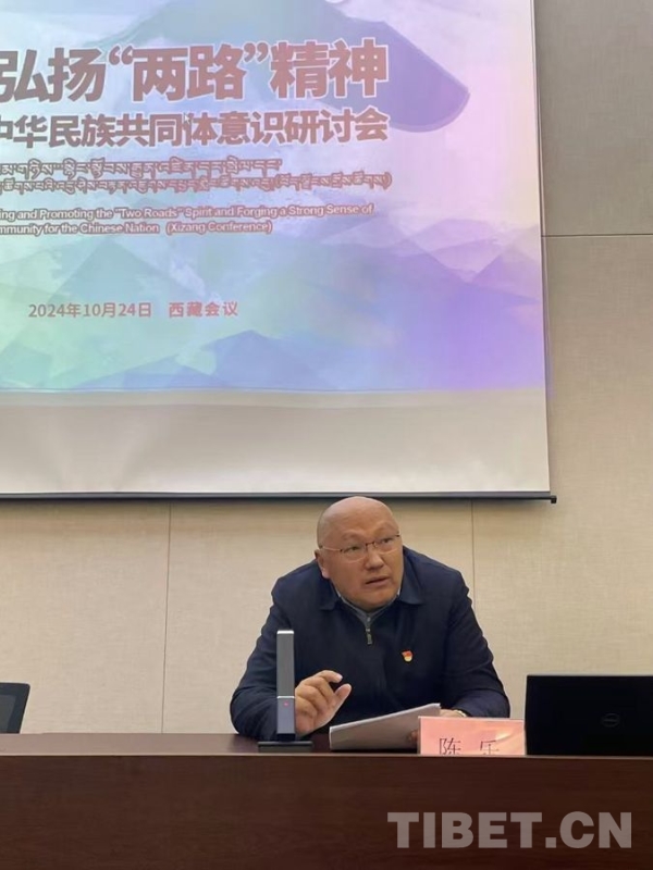 青海民族大學(xué)民族學(xué)與社會(huì)學(xué)學(xué)院教授陳文祥,以《青藏高原制宜鑄牢中華民族共同體意識(shí)的重要抓手》為題,談到“兩路”精神作為形成于青藏高原的精神豐碑,完全可以作為我們鑄牢中華民族共同體意識(shí)的抓手之一。