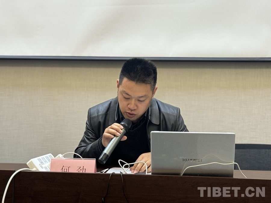 圖為何勁在作交流發(fā)言 攝影:噶哇扎西