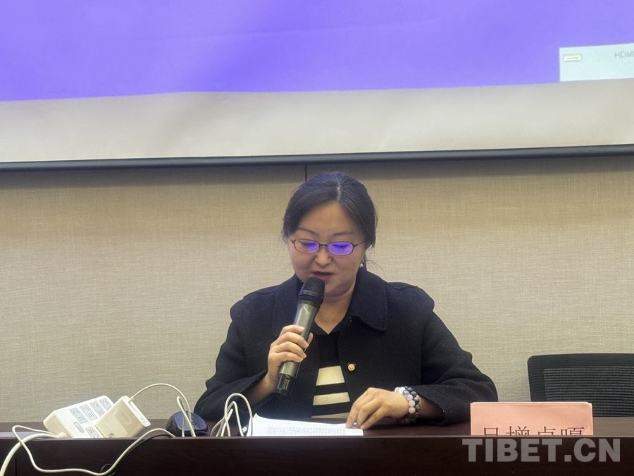 圖為旦增卓嘎在作交流發(fā)言 攝影:夏炎