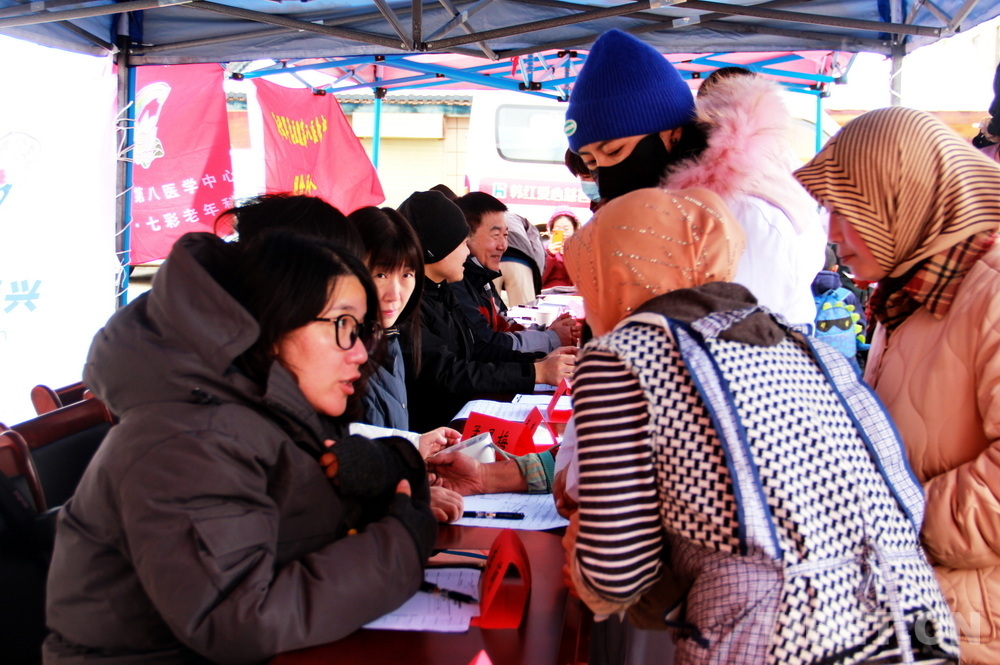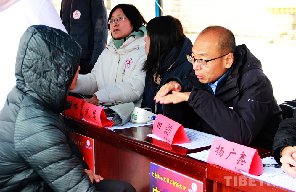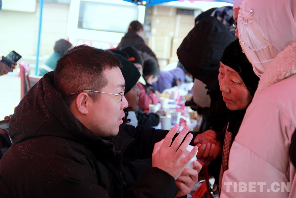 高原的大雪天,在室外即便來(lái)回走動(dòng)也感覺(jué)格外寒冷。前來(lái)問(wèn)診的患者絡(luò)繹不絕,醫(yī)務(wù)志愿者們堅(jiān)守崗位,身披雪花,腳踩積雪,在翻譯的幫助下不停接診,一坐就是大半天。有的醫(yī)務(wù)志愿者專心接診,渾然不知衣服上已經(jīng)積雪;有的醫(yī)務(wù)志愿者發(fā)現(xiàn)患者不太理解疾病的分科,就同時(shí)擔(dān)起了分診工作;有的醫(yī)務(wù)志愿者自身高反強(qiáng)烈,吸著氧也要堅(jiān)持接診……