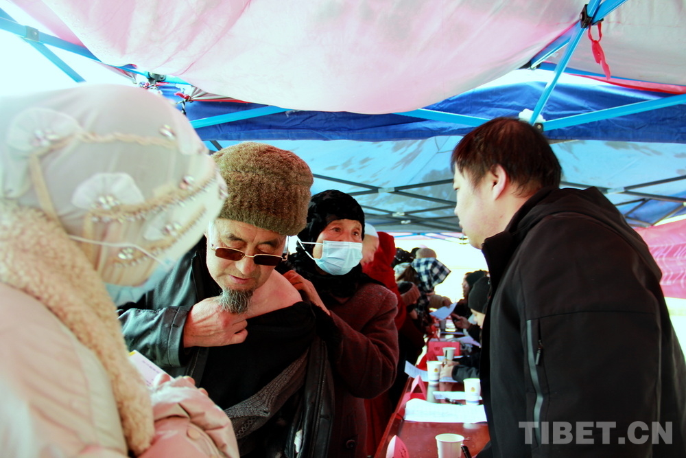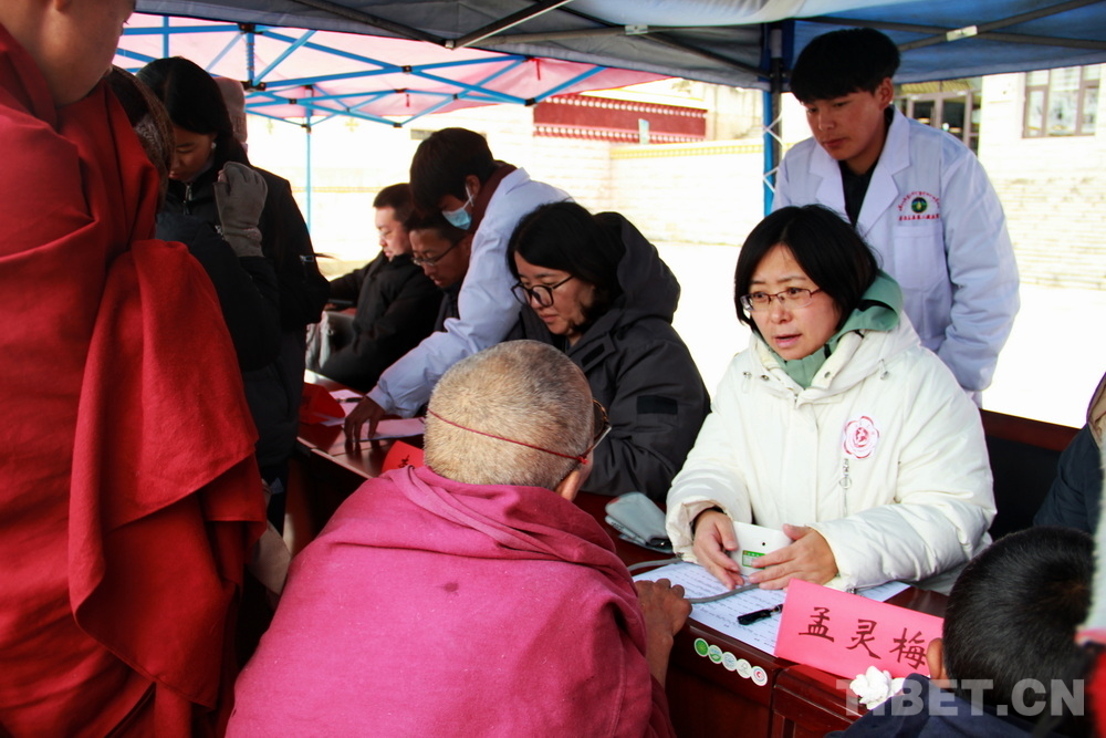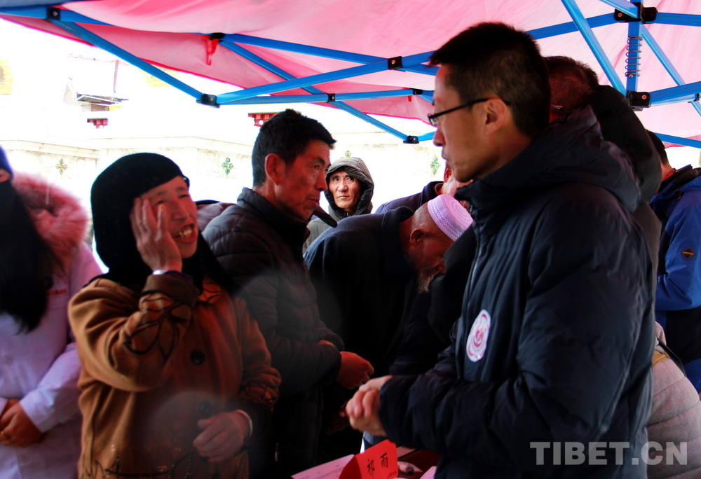 在郎木寺義診點(diǎn),此前為了容納更多群眾就診,因此將義診點(diǎn)設(shè)在了寺院門外的小廣場(chǎng)。盡管大雪紛飛,但提前得知義診消息的群眾已經(jīng)陸續(xù)趕來(lái),擔(dān)心臨時(shí)更換義診場(chǎng)所影響后續(xù)前來(lái)的群眾就診,醫(yī)務(wù)志愿者們毫無(wú)怨言地在臨時(shí)搭起的防雨棚下按時(shí)開始了義診。