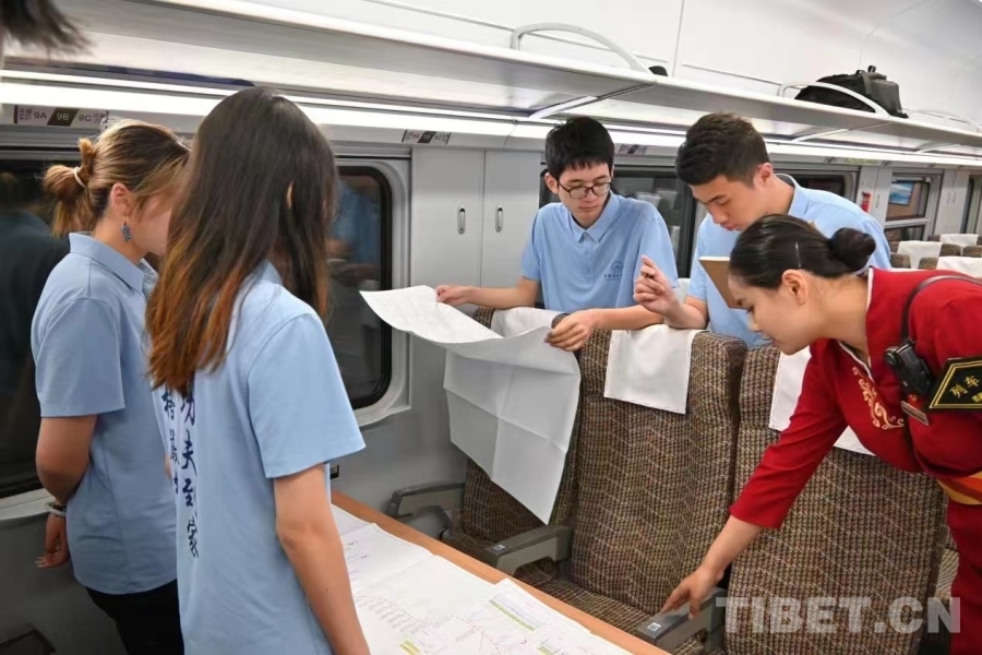 圖為工作室 “情系雪域高原 矢志復(fù)興偉業(yè)”實(shí)踐團(tuán)在拉林鐵路上開(kāi)展實(shí)景思政