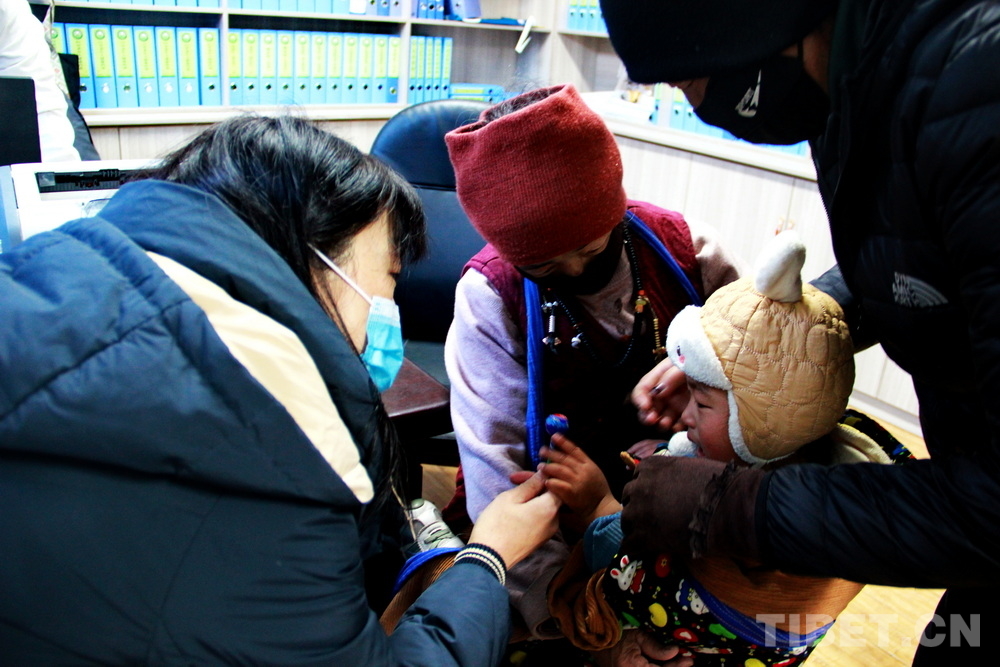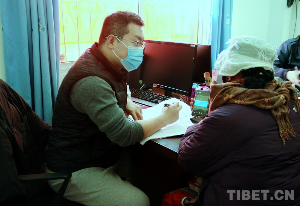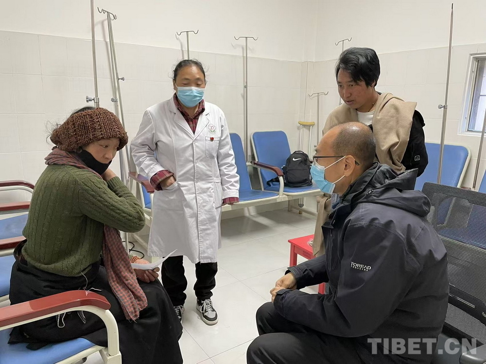 圖為北京大學(xué)第三醫(yī)院介入血管外科主治醫(yī)師楊廣鑫(右二)幫助若爾蓋縣巴西鎮(zhèn)中心衛(wèi)生院醫(yī)務(wù)人員分診 攝影:劉莉