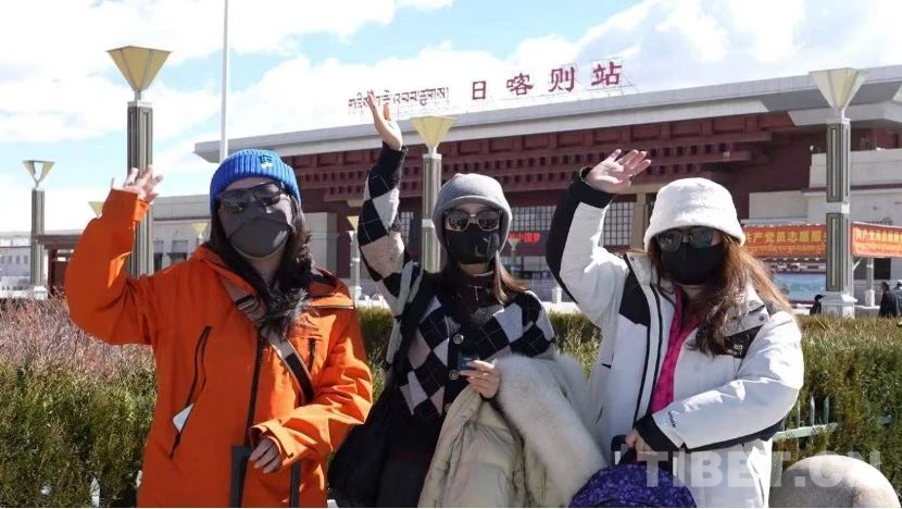 圖為來(lái)自甘肅的周女士及朋友剛剛乘坐珠峰專線由珠峰回到日喀則