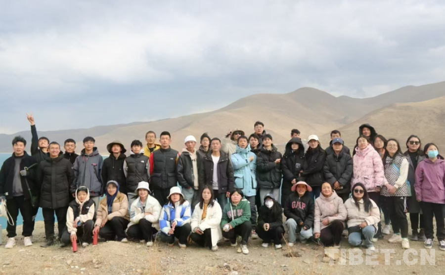 圖為張艾平帶領學生在羊卓雍錯研學