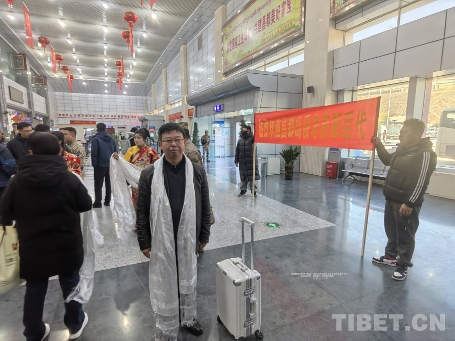 我懷著無比激動(dòng)的心情走進(jìn)機(jī)場(chǎng)大廳,看見對(duì)面不遠(yuǎn)處昌都軍分區(qū)的工作人員,身后豎立著一條橫幅寫著:“熱烈歡迎昌都戰(zhàn)役老前輩后代”,場(chǎng)面熱烈而隆重。