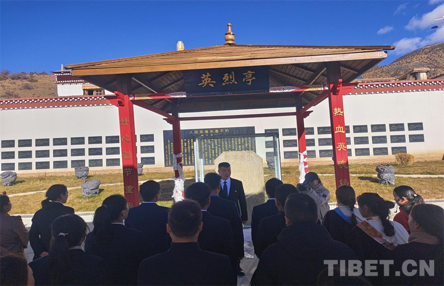 在洛隆縣康沙鎮(zhèn),在一片莊嚴肅穆的氛圍中,干部代表、學(xué)生代表、僧人代表、群眾代表等30余人集中在“重于泰山”的烈士紀念碑前,深刻緬懷先烈們的豐功偉績。這塊紀念碑記載著當年在平叛作戰(zhàn)行動中犧牲的53名革命先烈的感人事跡,60多年來義章寺僧人們精心守護著紀念碑,以實際行動發(fā)揚著愛黨愛國的情懷。