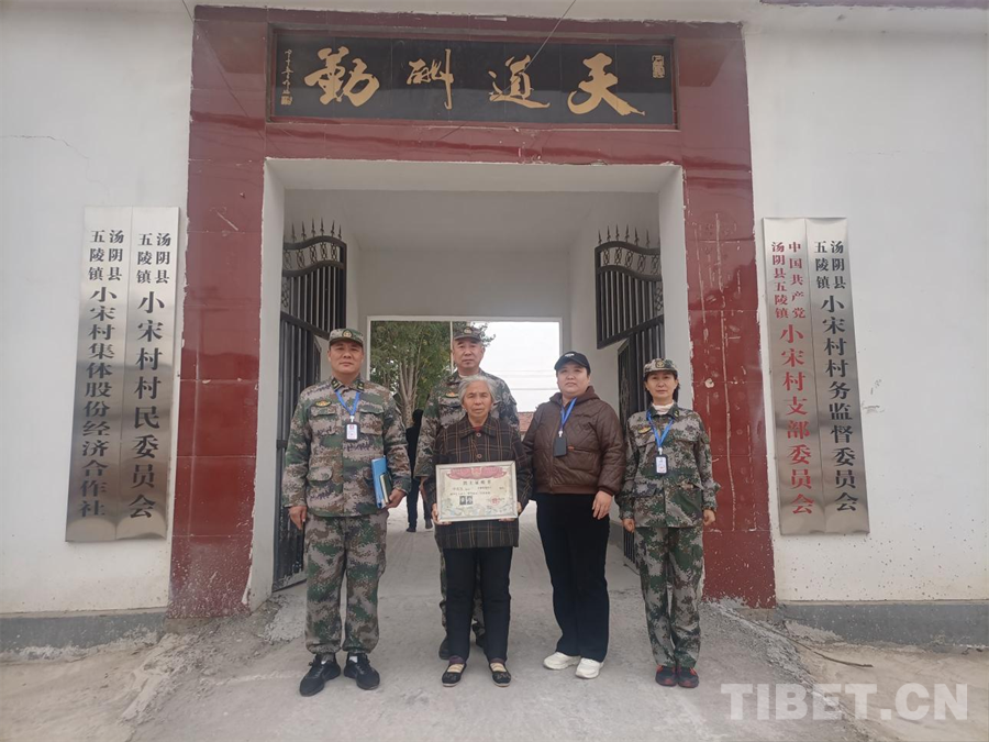 圖為“我為烈士來尋親”“安陽市退役軍人長城志愿服務(wù)總隊”烈士尋親工作組與申克玉烈士親屬合影