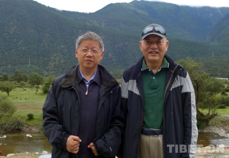 圖為多年后,范小建(左)與郭普金(右)在林芝到拉薩高速公路上相遇后合影留念(2016年8月8日攝)