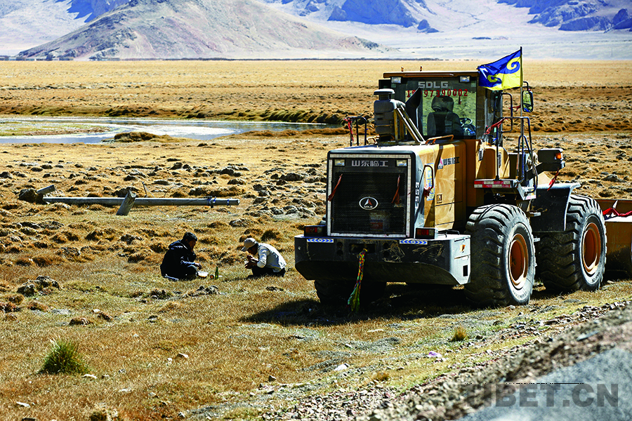 我們沿著349國(guó)道環(huán)湖而行,在白地村路段遇到赤列、索朗多吉、白瑪赤列、巴桑頓珠、次仁倉(cāng)姆和嘎桑正在忙碌著。