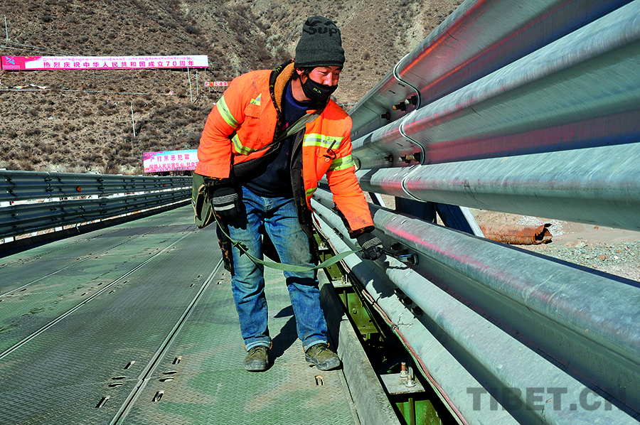 在西藏公路上行車,往往能見到忙碌的養(yǎng)護(hù)人。他們要么揮锨清除公路邊的雜物,要么驅(qū)車沿途巡查,要么在群山中清除路障,要么在緊鋼架橋護(hù)欄上的螺絲。在一條條公路上,川流不息的不僅有車輛,還有勇往直前的徒步者。有沒有人注意到,自己春夏秋冬能在西藏大地上自由穿梭,是因?yàn)楦咴系拇舐菲教箷惩?。為他們保駕護(hù)航的,正是那些猶如盛開在山腳下、公路旁黃色小花的養(yǎng)護(hù)人。