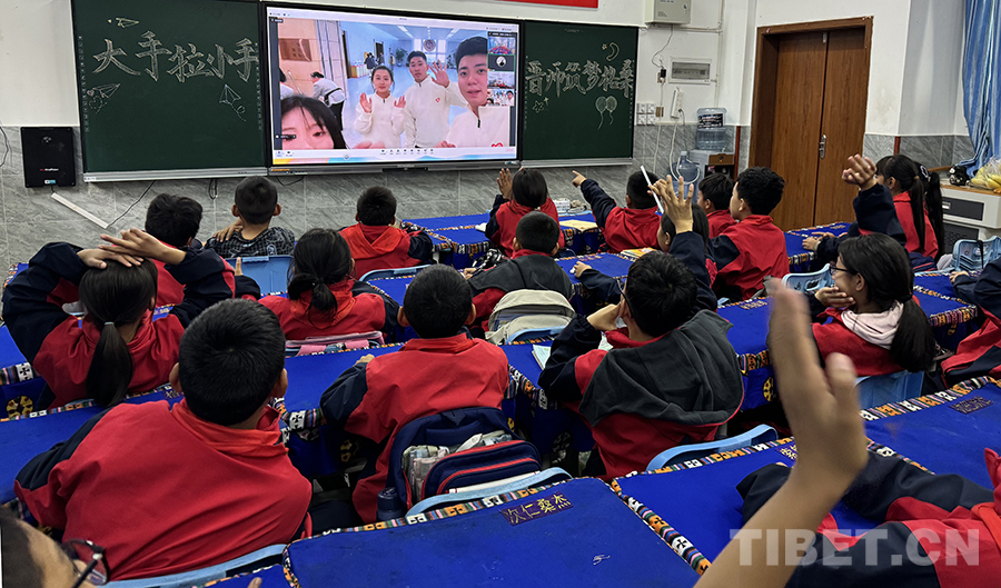 “我的家在西藏墨脫,你家在哪呢?你有沒有吃過藏面、石鍋雞,我們這里還有甜茶,你有機會一定要找我玩,我?guī)愠晕覀冞@里的美食哦!”“這位姐姐也喜歡閱讀,以后我就有可以一起分享書籍的好伙伴了?!苯眨谖鞑亓种ツ摽h完全小學(xué)的校園里,發(fā)生了一件令人興奮的事情——孩子們終于跟山西師范大學(xué)的哥哥姐姐們連線啦!伴隨著孩子們的歡聲笑語,山西師范大學(xué)發(fā)起的“大手拉小手,晉師筑夢格?!毕盗谢顒右簿痛烁嬉欢温?。