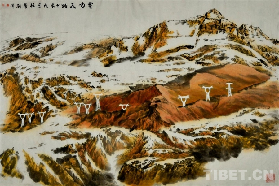 圖為劉洋繪畫作品《電力天路》