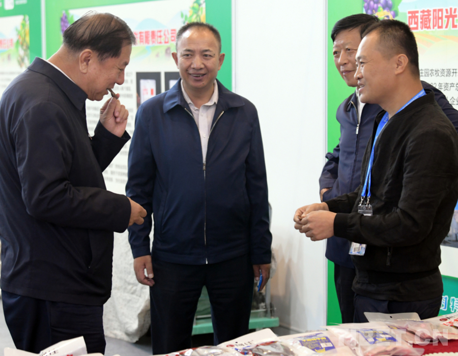 圖為在北京舉行的第二屆中國鄉(xiāng)村特色優(yōu)勢產(chǎn)業(yè)發(fā)展大會上,參會嘉賓在西藏展柜前品嘗牦牛肉干(唐召明2024年10月11日攝)