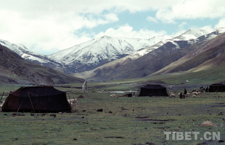 圖為藏北牧民過去游牧所居住的黑色牦牛毛帳篷(唐召明2001年攝)