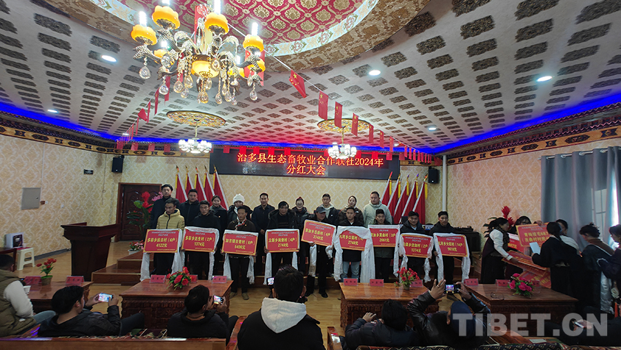 中國(guó)西藏網(wǎng)訊 12月26日,青海省玉樹藏族自治州治多縣生態(tài)畜牧業(yè)合作聯(lián)社(以下簡(jiǎn)稱合作聯(lián)社)舉行了2024年分紅大會(huì),為3401戶監(jiān)測(cè)戶分紅60.594萬(wàn)元,治多縣農(nóng)牧和科技局、5鄉(xiāng)1鎮(zhèn)和20個(gè)行政村的負(fù)責(zé)人及入社股民代表參加。