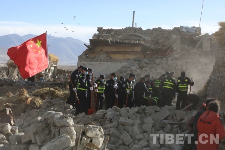 中國西藏網(wǎng)訊 1月7日9時5分,在西藏日喀則市定日縣措果鄉(xiāng)附近發(fā)生6.8級地震,震源深度10千米。西藏出入境邊防檢查總站移民管理警察在西藏日喀則市定日縣長所鄉(xiāng)玉白村參與救援及安置工作。五星紅旗之下,是國家對災區(qū)群眾的守護,亦是災區(qū)群眾對黨和國家救援力量的期盼。有五星紅旗的地方就有信念的燈塔,這是災區(qū)一線的守望?。ㄖ袊鞑鼐W(wǎng) 通訊員/郭遠敬)