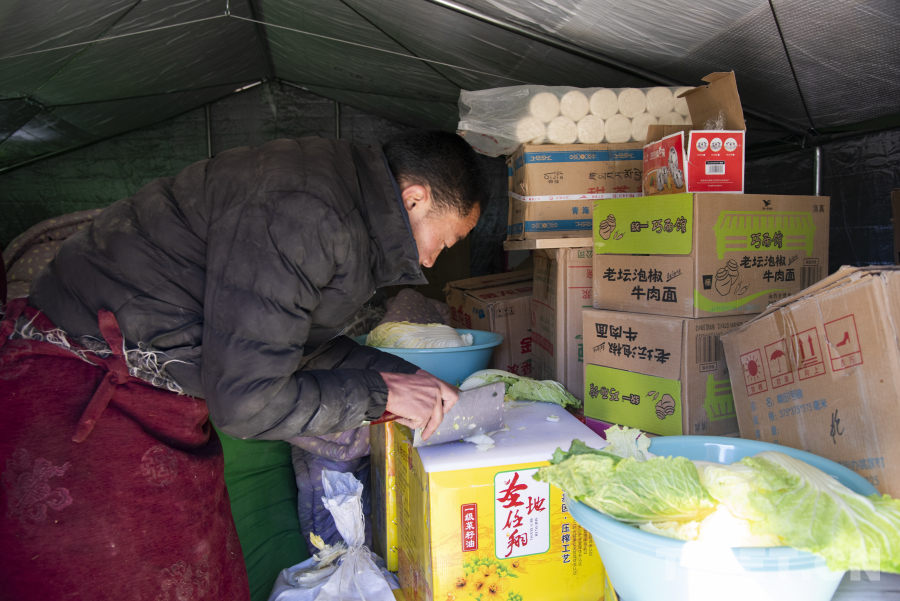 圖為在安置點(diǎn)的僧尼正在準(zhǔn)備當(dāng)日午飯,安置點(diǎn)內(nèi)受災(zāi)僧尼各項(xiàng)物資充足 攝影:趙振宇