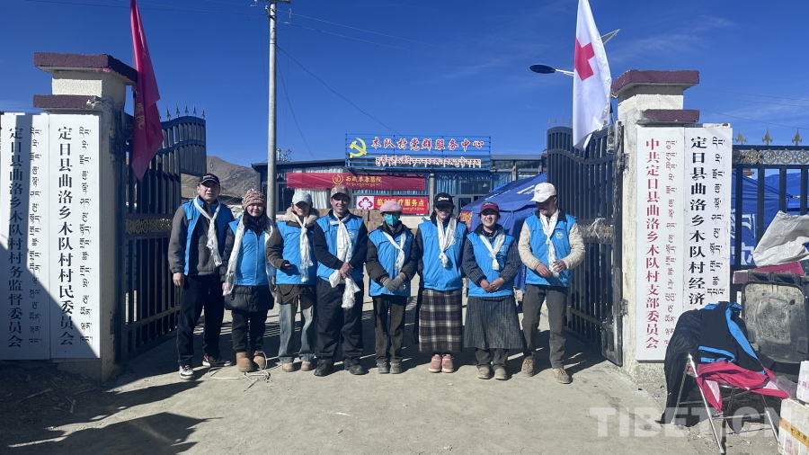 圖為胡志剛等一行8人在定日縣曲洛鄉(xiāng)木隊(duì)村