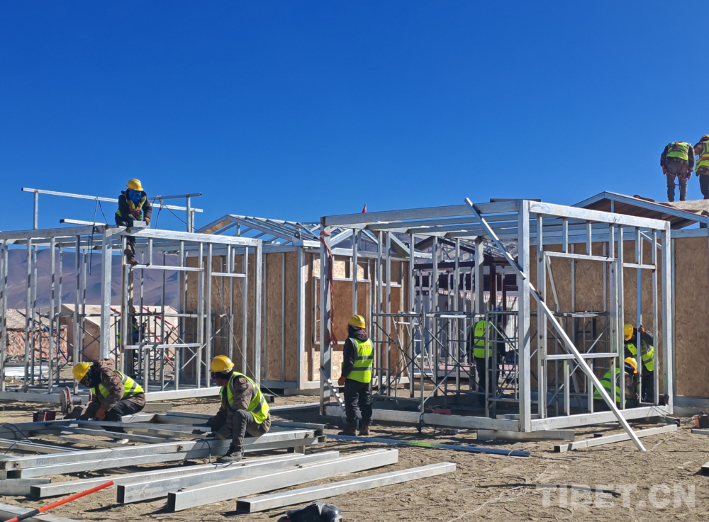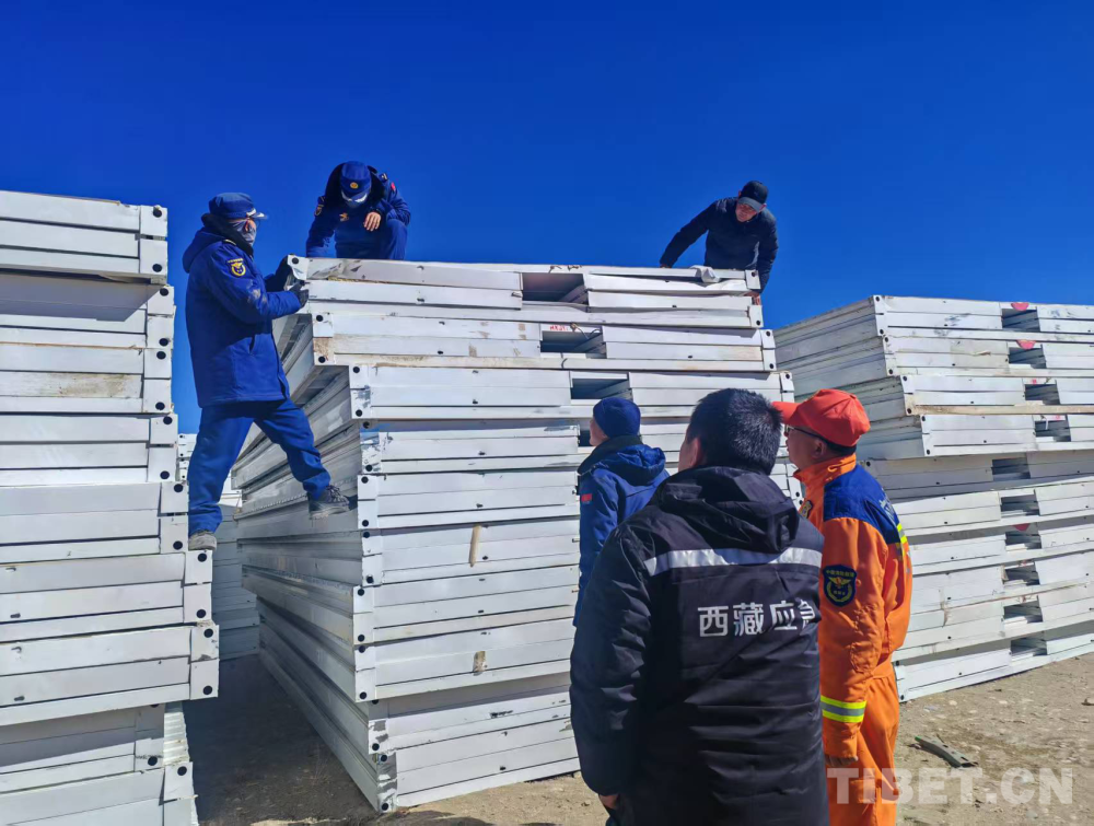 圖為西藏應(yīng)急管理廳統(tǒng)籌板房搭建工作