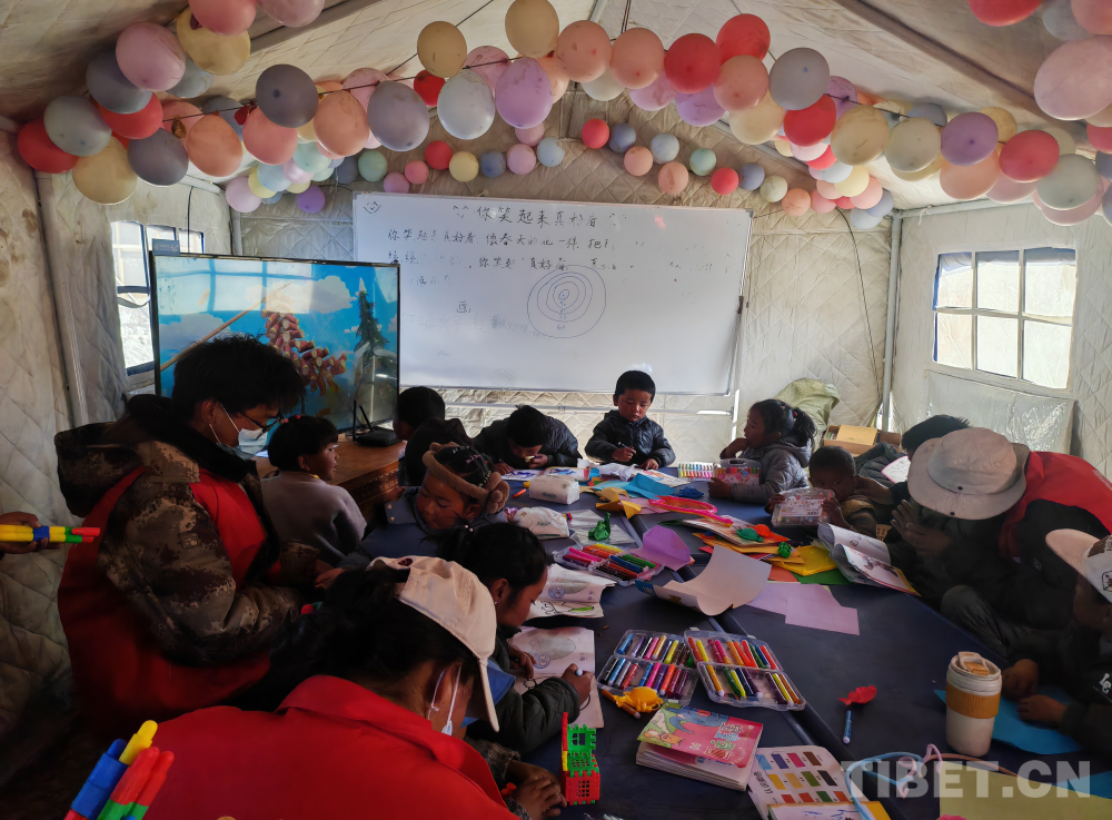 圖為地震災(zāi)區(qū)中的兒童托管課堂