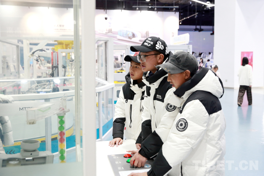 2025年2月12日,西藏自治區(qū)阿里地區(qū)邊境縣31名師生在京研學(xué),圖為3名同學(xué)在中國科學(xué)技術(shù)館觀察模擬實驗 攝影:陳衛(wèi)國