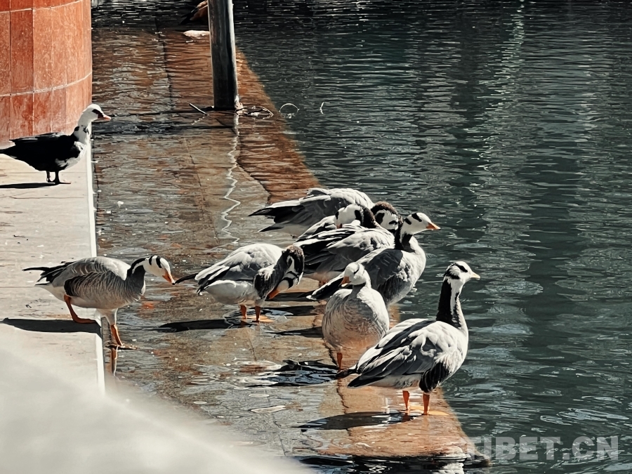 圖為在宗角祿康湖邊休憩的斑頭雁群 攝影:德吉卓瑪