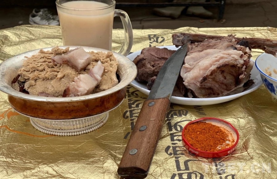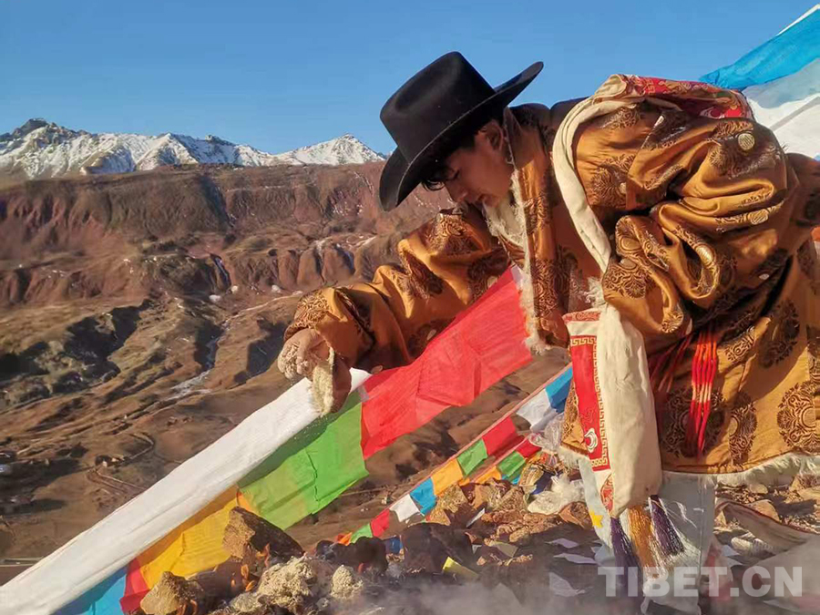 大年初三要早起敬山神。在出發(fā)的前一天,要準備好獻祭的牛奶、青稞酒、清茶,還有“?!?、香、隆達、哈達等。