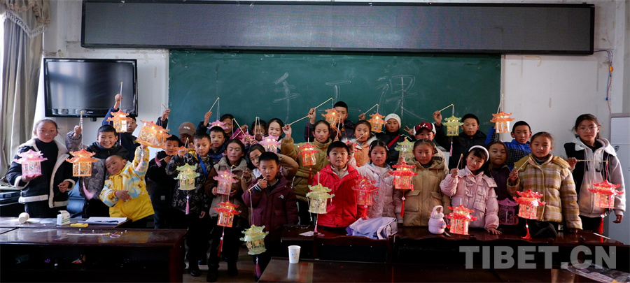 圖為西藏洛隆縣參加“假日托育”志愿服務(wù)活動的孩子們展示自己的手工成果